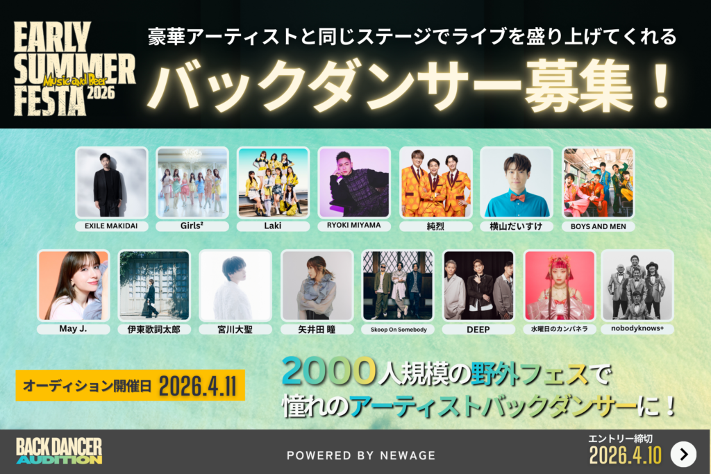 本イベントにて出演されるアーティストのパフォーマンスを盛り上げるバックダンサーを募集します!
